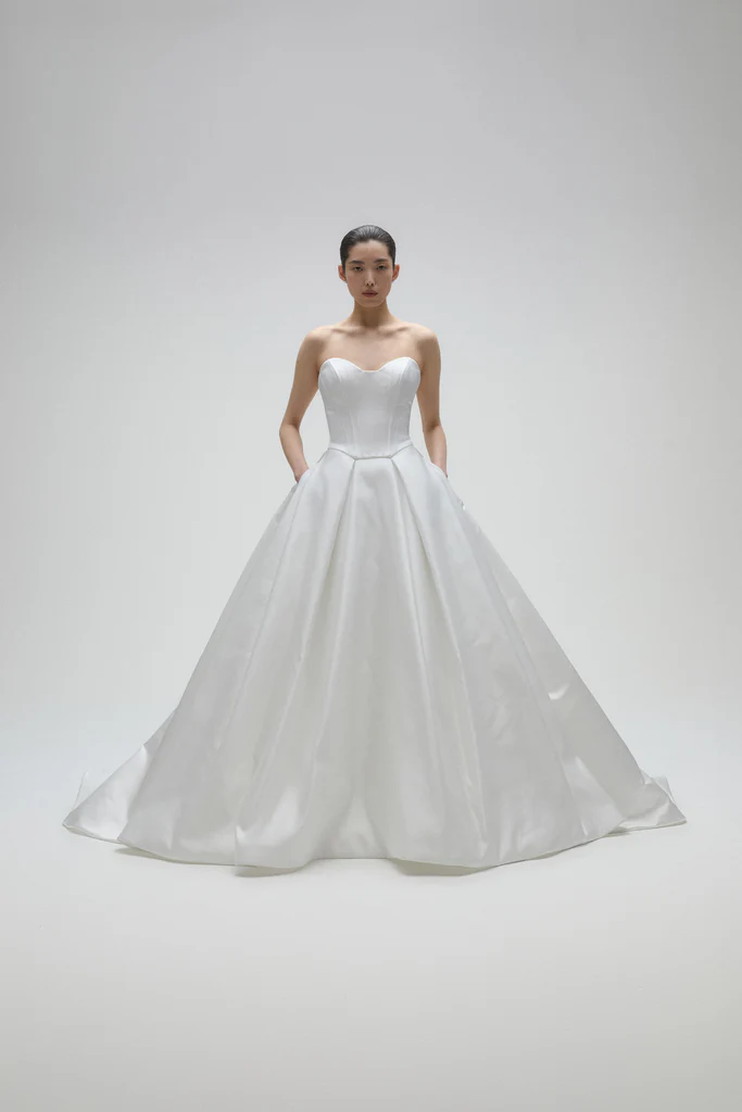 Amsale’s gowns are known for clean lines and simple beauty. The 2026 collection includes dresses that are easy to wear and look polished. Bridesmaids’ outfits match the bride’s style while being comfortable. Soft fabrics, smooth fits, and gentle textures make Amsale’s designs perfect for small or large weddings. Brides who want a modern, tidy look often choose her gowns.