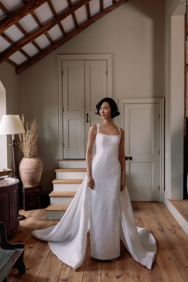 Many brides want their dress to look grand during the ceremony but feel light and easy for the reception. Detachable overskirts, lace jackets, and soft capes allow this transformation.