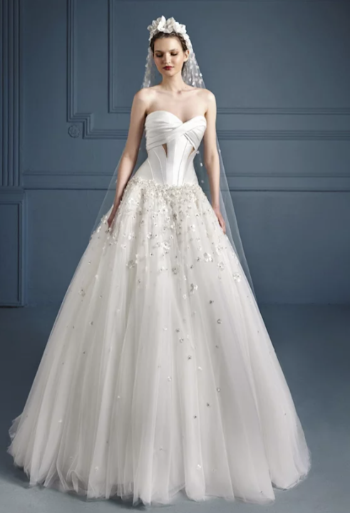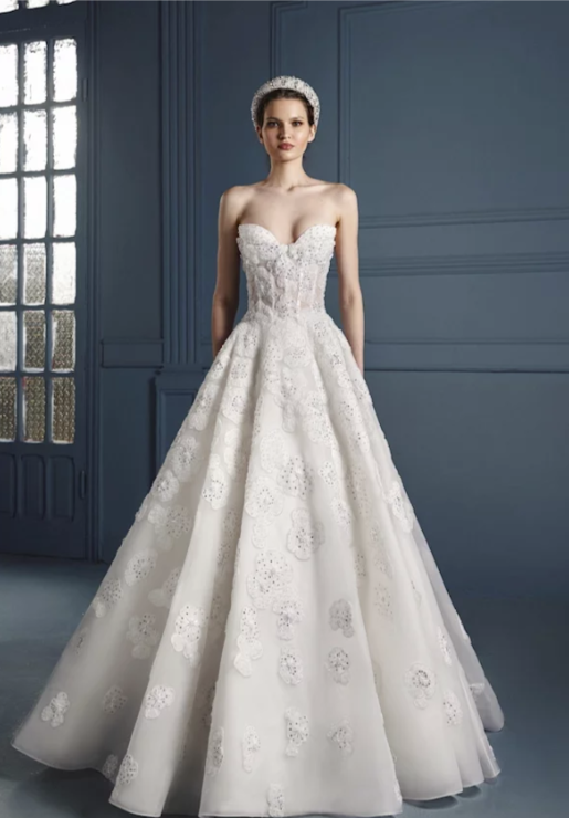Tony Ward’s Spring 2026 gowns reintroduce the drop waistline with a new sense of purpose. These silhouettes extend the torso for a lengthened effect, then open into skirts that move with lightness. The result is a sculpted yet flowing look that celebrates proportion while adding a touch of drama. Brides will see how this design detail shifts the gown’s energy from traditional to strikingly modern. The drop waistline is not just about length; it is about balance. It draws the eye to the natural curve of the body, then allows the skirt to move freely without interruption. Brides searching for a gown that feels both statuesque and graceful will find this design appealing. In Spring 2026, Tony Ward has shaped the drop waistline into something versatile, offering both grandeur and subtle charm depending on the chosen fabric and cut.