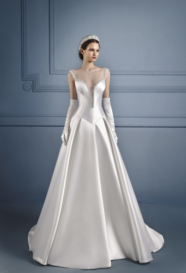 Silk Mikado holds structure beautifully, adds refined shine, and creates dramatic yet lightweight bridal looks.